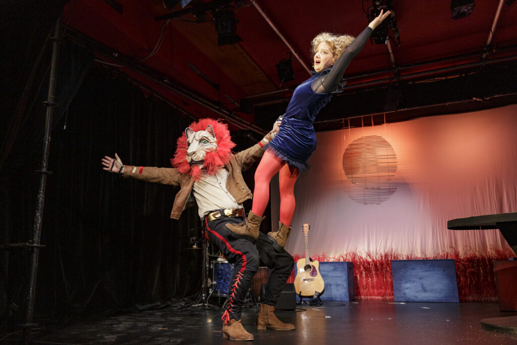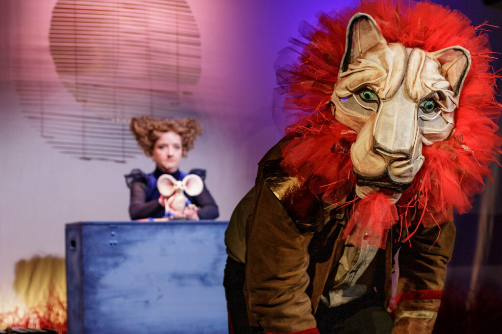 Ein Spiel mit viel Live Musik, mit kleiner mutiger Maus und großem brüllendem Löwen und der Erkenntnis, dass auch in der friedlichsten Maus der Welt ein Löwe stecken kann!