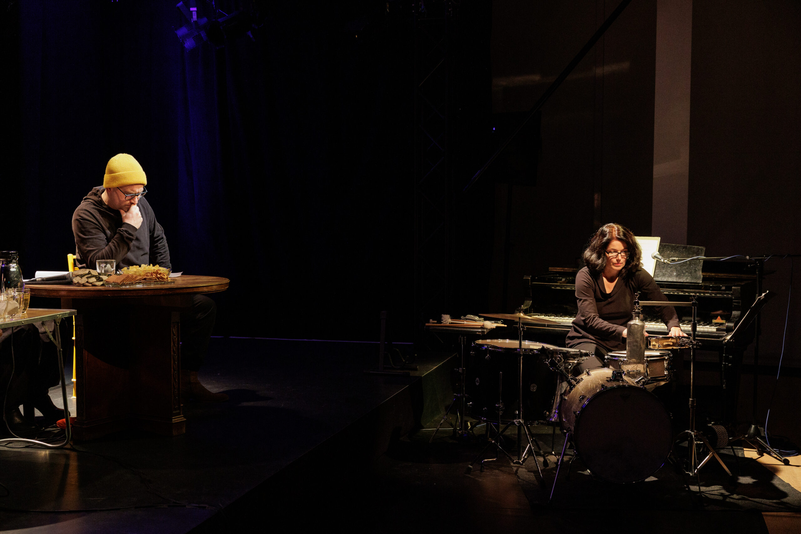 Ausgehend von Interviews, die Sonya Schönberger (Künstlerin) und Uli Palzer (Regisseur) in Lichtenberg geführt haben, balanciert die Performance zwischen Wirklichkeit und Zuspitzung: Mit live gelesenen Texten, einem Crossover aus Trommeln und Sounds sowie gesampelten Filmclips aus Lichtenberg.